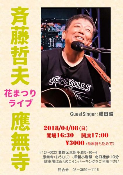 そんな寺で開催する「斉藤哲夫花まつりライブ」です。
